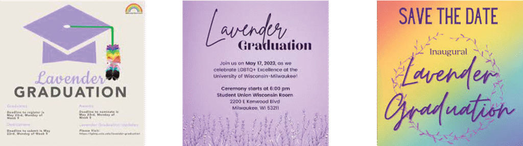 The purpose of the Archives is to collect and preserve the history of Lavender Graduation. How was it created on campuses, with what funds, and through what initiatives? Who were the people and the dates of their school’s event? We wish to generate lists of exhibits, publications, and other special items—to create a framework for better understanding how Lavender Graduation has unfolded over time.